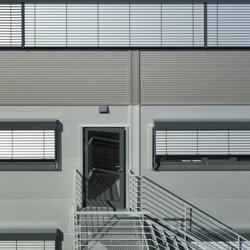 Fassade bestehend aus Polyurethan Sandwichelement microliniert in RAL 7016 dunkelgrau